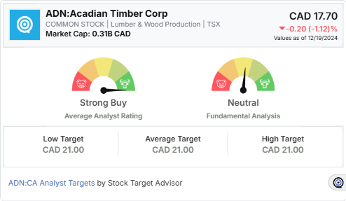 Stock Target Advisor’s Analysis on Acadian Timber Corp: