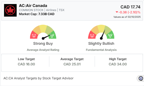 However, the airline’s high leverage (debt-to-equity ratio of 1,377.64%) and poor risk-adjusted returns remain concerns. The stock’s current price of CAD 17.74 is significantly below its average 12-month target price of CAD 25.01, suggesting a potential upside of approximately 41.8% based on Stock Target Advisor’s projections.