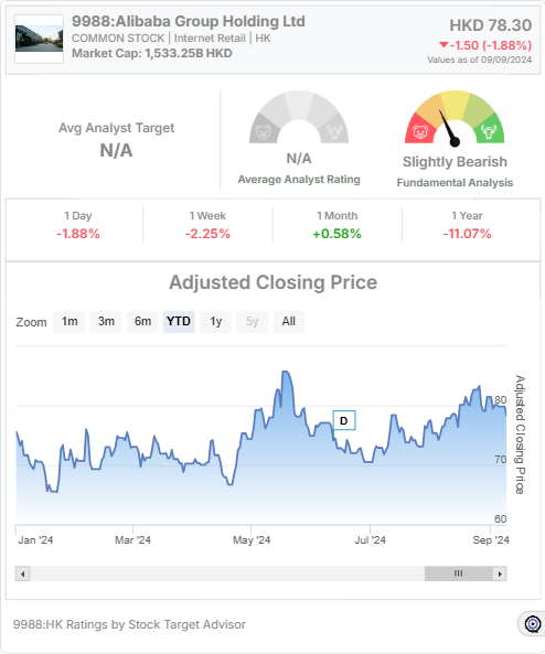 Upon the announcement of Alibaba’s inclusion in the Stock Connect program, its shares jumped notably. The increased demand from mainland Chinese investors has been a key driver of the stock’s recent performance. The share price closed at HKD 78.30, showing a marked improvement after the stock’s entry into the program. This surge followed a relatively stable performance over the past month, where Alibaba’s stock increased by 0.45%, despite a yearly decline of 11.07%.