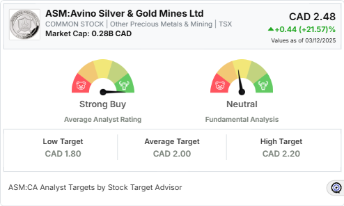 Stock Target Advisor’s Analysis on Avino Silver & Gold Mines Ltd: