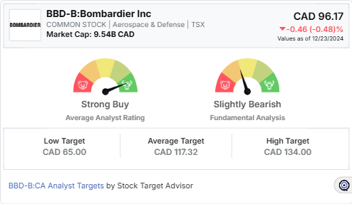 In contrast, Stock Target Advisor’s rating for Bombardier Inc. leans towards selling. Their target price is pitched at C$113.92, suggestive of an 18.45% price change in the coming year. The advisory service noted four positive signals and six negative ones – indicative of a blend of favorable and concerning attributes.