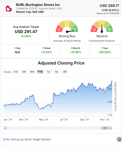 According to Stock Target Advisor’s insights, Burlington Stores Inc. maintains a “Neutral” rating, based on a balanced mix of positive and negative signals: