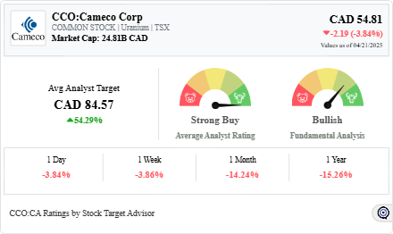 Stock Target Advisor’s Analysis on Cameco Corp: