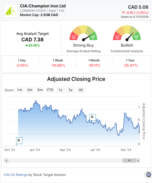 With a robust operational foundation and ambitious expansion plans, Champion Iron Ltd is well-equipped to deliver value to its shareholders. Stock Target Advisor’s analysis underscores the company’s potential for a 45% gain, making it a compelling option for investors in the iron ore sector.