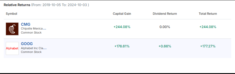 Below are the recent stock performance of CMG and GOOG.