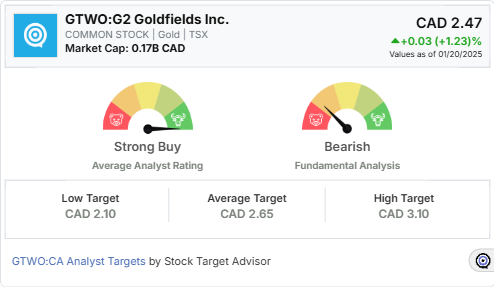 Analysts have set an average 12-month target price of CAD 2.65, with estimates ranging from CAD 2.1 to CAD 3.1. While Stock Target Advisor rates G2 as “Bearish,” indicating caution, the average analyst rating for the company remains “Strong Buy.”