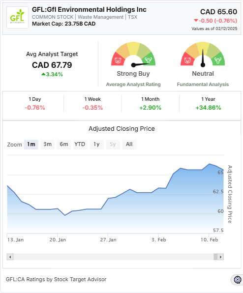 GFL Environmental Holdings Inc. has received a Neutral rating from Stock Target Advisor based on six positive and six negative signals.