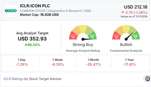 Analysts are optimistic, shown by an upward trend in estimates, reflecting a growing confidence in ICON’s performance trajectory. ICON PLC’s stock recently closed at $212.18, with Stock Target Advisor’s 12-month target price projection at $351.11, translating to a potential upside of approximately 65.5%.