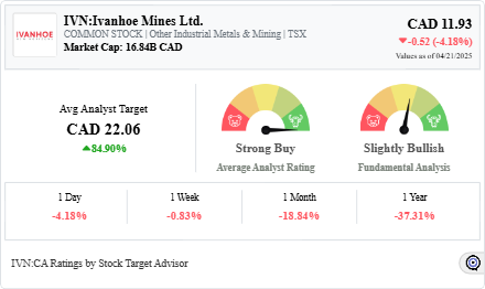 Stock Target Advisor’s Analysis on Ivanhoe Mines Ltd: