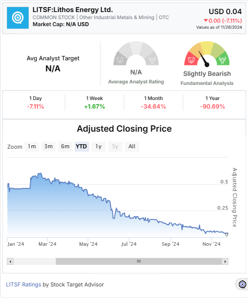 Stock Target Advisor assigns Lithos Energy Ltd. a “Slightly Bearish” rating based on a combination of: