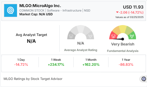 MicroAlgo Inc (MLGO) made headlines this week as one of the most active stocks, skyrocketing 455% on March 24 before correcting 14.7% on March 25 to close at $11.93.