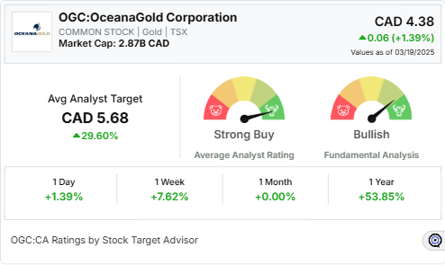 OceanaGold Corporation (OGC:CA) is catching investor attention with a current stock price of CAD 4.38. This is well below the average analyst target of CAD 5.68, pointing to a potential upside of 29.6 percent.