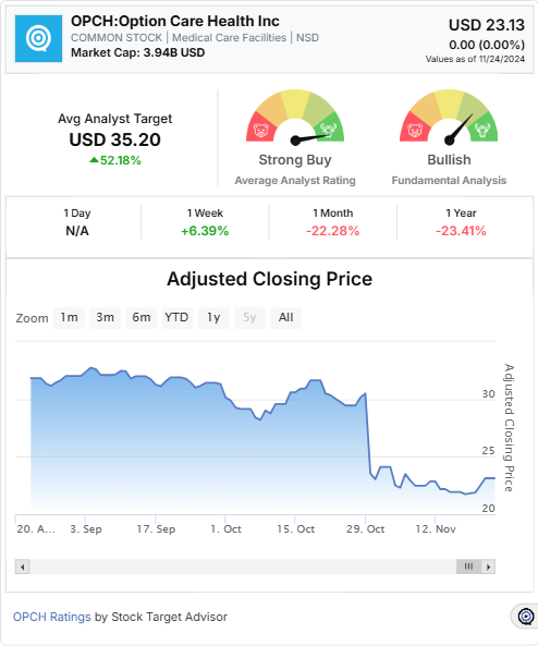 Despite recent volatility, with a one-year capital loss of -23.41%, analysts’ average target price of $35.20 and Stock Target Advisor’s projected 47% price appreciation suggest significant upside potential. With a “Strong Buy” rating from leading analysts and bullish institutional indicators, OPCH emerges as a compelling investment in the healthcare sector.