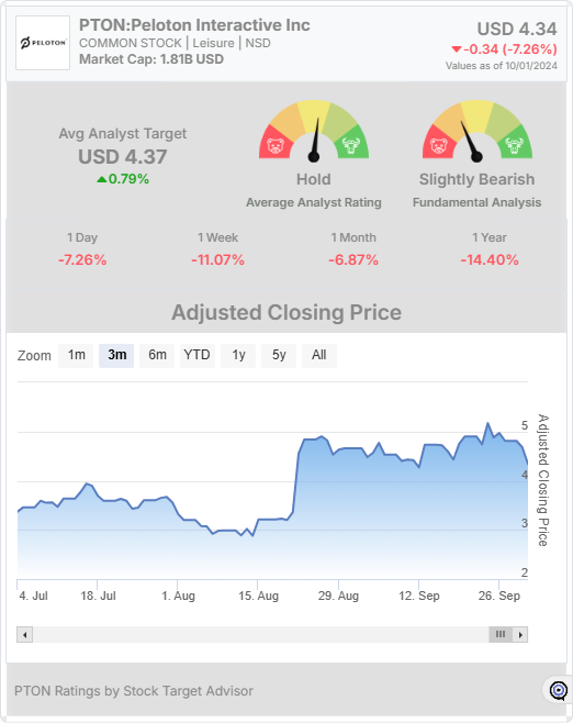 Despite these challenges, analysts have provided an average target price of USD 4.37 for the next 12 months, with a general consensus of a “Hold” rating. Stock Target Advisor’s own target price stands at USD 4.65, projecting a 7.14% potential price change over the next year. However, with the current stock price at USD 4.34, investors remain cautious as Peloton navigates through market headwinds.