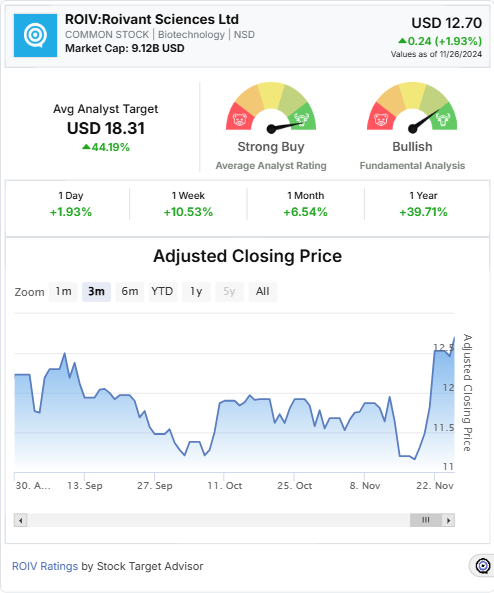 According to Stock Target Advisor, Roivant Sciences Ltd. has a Bullish rating, supported by eight positive signals that highlight its market potential. Analysts have set an average target price of USD 18.31, significantly above its current price of USD 12.70 as of the latest close. The company’s one-year return of +39.71% underscores its consistent upward momentum in the biotechnology sector.