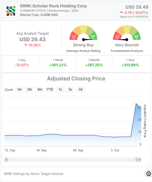 Despite Stock Target Advisor’s bearish stance, the majority of market analysts are bullish. The stock is rated as a Strong Buy by key analysts such as J.P. Morgan and Wedbush Securities, who have provided target prices ranging from $18 to $31. This discrepancy between short-term bearish signals and long-term bullish expectations highlights a divided sentiment among investors. As the market anticipates more developments in Scholar Rock’s clinical trials, investor interest remains high.