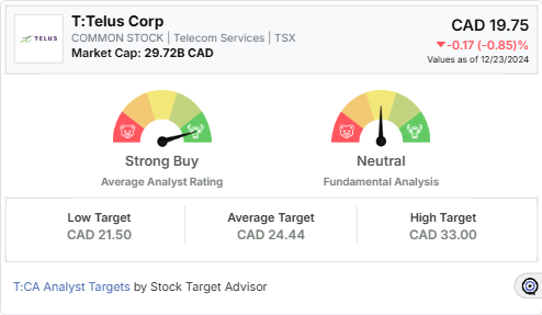 How Does Stock Target Advisor Rate Telus Corp (T:CA)?