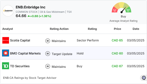Stock Target Advisor provides insights into Enbridge Inc.’s market performance based on the analysis of 13 analysts covering. The average target price for the stock is CAD 61.94, reflecting a mix of ratings and perspectives.