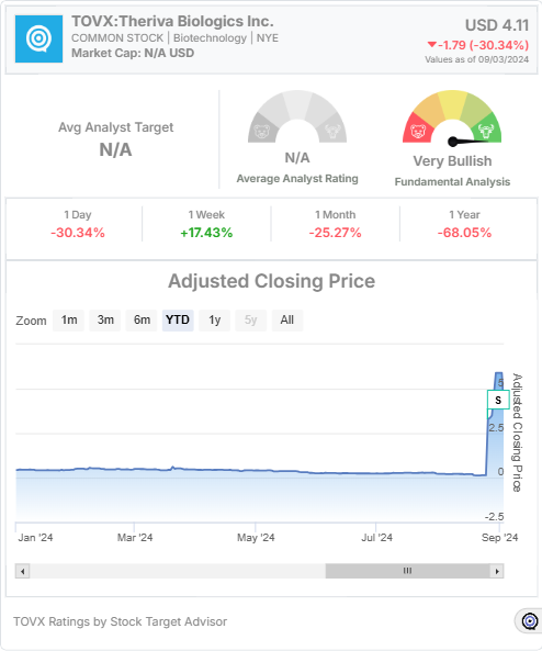Theriva Biologics Inc (TOVX) is capturing the attention of investors and market watchers with its promising pipeline in the biotechnology sector. As an emerging player in this dynamic field, Theriva Biologics is making strategic moves to position itself as a noteworthy contender. This article will explore the company’s current standing, recent performance, and the outlook provided by Stock Target Advisor.