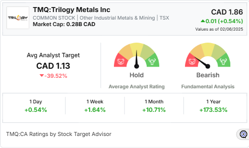 Stock Target Advisor has issued a bearish rating for Trilogy Metals Inc., citing four negative signals and only one positive indicator.