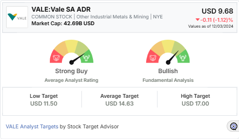 Vale’s strategic initiatives, financial strength, and bullish outlook position it as a compelling choice for investors. With Stock Target Advisor projecting a 58.98% price increase over the next 12 months, Vale SA ADR offers promising opportunities for growth and recovery.