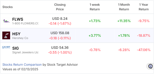 Here’s a deeper look at three stocks poised to gain from the Valentine’s Day rush: