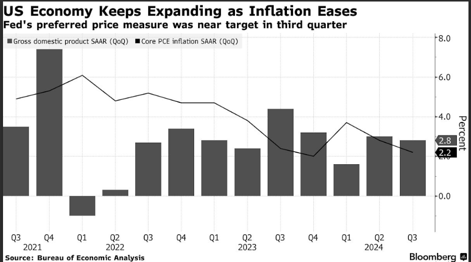 The Federal Reserve is expected to cut interest rates as inflation pressures ease, following mixed economic indicators. The Q3 GDP estimate showed a 2.8% growth rate, but the labor market is softening, with only 12,000 jobs added in October due to weather disruptions and strikes.